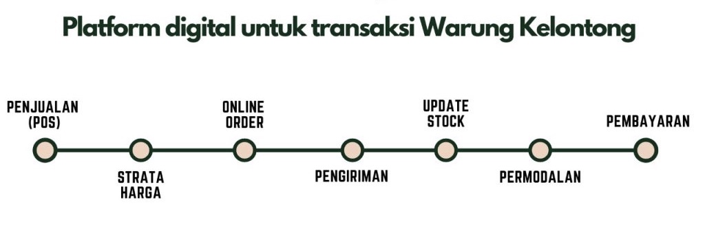 Menghubungkan warung kelontong dengan rantai pasok produk kelontong (FMCG) untuk menjaga ketersedian stok dagangan dan kepastian harga yang dapat dipantau secara online setiap saat.